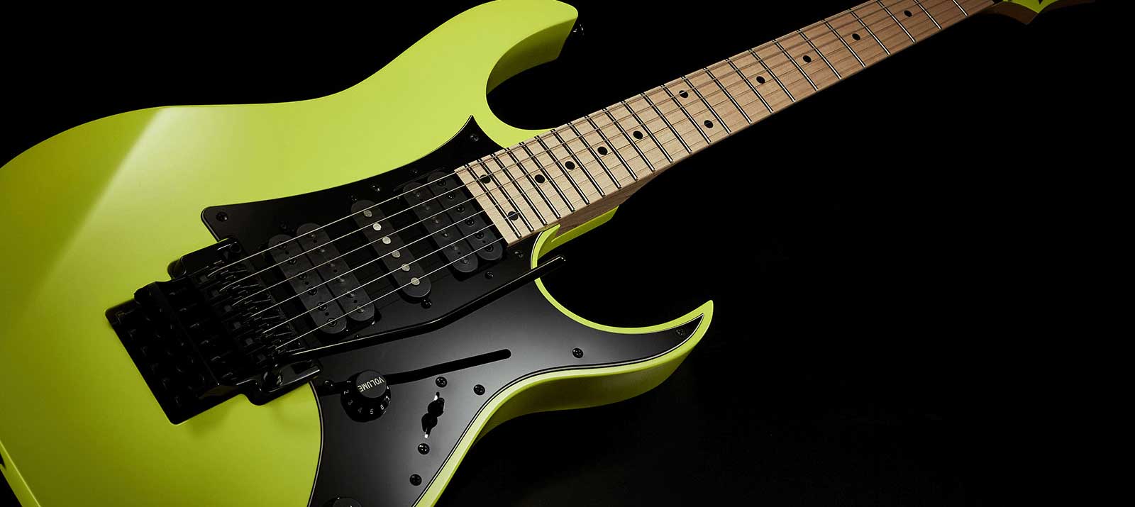 Voorbeeld van een rechtshandige elektrische gitaar. Afbeelding: Ibanez.com