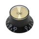 Boston KB-132-T tone knop gemaakt van kunststof met nummering 0 tot 10 in zwarte uitvoering met gouden dop. Geschikt als vervanger van een huidige knop op je SG/Double Cutaway stijl gitaar. Deze knop past op 1/4" split-shaft potentiometers met coarse karteling (18 karteltjes). Je drukt de knop zo op de potmeter, zonder stelschroef.