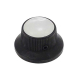 Boston KB-261 bell knop in zwarte uitvoering met parelmoer inleg op de bovenzijde van de knop. Deze knop past op solid-shaft potentiometers. De knop wordt met behulp van de stelschroef aan de zijkant van de knop aan de potmeter bevestigd.