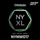 D'Addario NYNW017 Nickel Wound losse .017" snaar voor elektrische gitaar. Deze snaar is te vinden in de NYXL snarensets van D'Addario. D'Addario NYXL snaren zijn gemaakt volgens een totaal nieuw proces van de kern wat zorgt voor een sterkere snaar, tot 131% sterker dan conventionele snaren, en een stabielere snaren spanning.