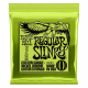 Ernie Ball 2221 Regular Slinky's zijn Ernie Ball's meest verkochte snaren aan gitaristen over de hele wereld. Deze snaren zijn gemaakt van vernikkeld staal, gewonden om een zeskantige stalen kern. Slinky's geven een goede gebalanceerde toon aan je gitaar.