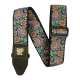 Ernie Ball 5340 jacquard geweven nylon gitaarband met Evening Bloom thema. De band is 5 centimeter (2") breed. De band is voorzien van lederen eindstukken, machinaal gestikt voor maximale sterkte en duurzaamheid. Zwarte gesp voor het instellen van de lengte.