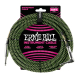 Ernie Ball 6077 gevlochten instrumentkabel in zwart en groene uitvoering, met een lengte van 3 meter. Ernie Ball gevlochten gitaarkabels hebben een uniek ontwerp en zijn gemaakt met materialen van hoge kwaliteit, bedoeld om extra lang mee te gaan. Dubbele geleiders leveren een betrouwbare, heldere toon met crispy hoge tonen, strakke middentonen en rijke harmonischen.
