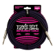 Ernie Ball 6395 gevlochten instrumentkabel in violet en zwarte uitvoering, met een lengte van 5.5 meter. Ernie Ball gevlochten gitaarkabels hebben een uniek ontwerp en zijn gemaakt met materialen van hoge kwaliteit, bedoeld om extra lang mee te gaan. Dubbele geleiders leveren een betrouwbare, heldere toon met crispy hoge tonen, strakke middentonen en rijke harmonischen.