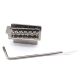 De brug is uitgevoerd met block saddles. Deze zadels zorgen voor een stabiele snaargeleiding en een solide overdracht van trillingen naar de body. Dat merk je in een strakke respons en een consistente klank. Je ontvangt een complete brugset met alle benodigde onderdelen voor montage. Zo kun je direct aan de slag met het installeren van de tremolo op jouw gitaar. In de set vind je de zes bevestigingsschroeven voor de brug, een spring claw met drie veren en de bijbehorende montageschroeven, plus een tremoloarm met punt.