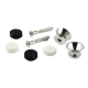Fender American Standard Series strap buttons, set van twee buttons in vernikkelde uitvoering. Deze strap pins worden geleverd inclusief vilten ringen en schroeven voor montage. Er worden zowel witte als zwarte vilten ringen meegeleverd.