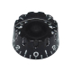 Boston KB-116 Speed Knop met inhammen met nummering naar beide kanten, dit komt veel voor op LP-model gitaren. Geschikt als vervanger van een huidige volume / toon knop. Deze knop past op een USA potmeter met een gespleten of geribbelde schacht met een diameter van 5.95mm met 24 ribbels. Uitvoering: transparant zwart.