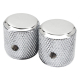 Set van twee metalen, verchroomde knoppen gebruikt op '60-er jaren Telecasters, waaronder op early '64 Telecasters. Deze volumeknoppen passen op de meeste moderne telecaster gitaren. De verpakking bestaat uit twee knoppen en komt met bevestigingsschroeven. Deze knoppen passen op 1/4” solid shaft potmeters.
