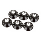Fender Pure Vintage Black/Silver skirted versterkerknoppen. Set van 6 kunststof knoppen in zwart/zilveren uitvoering. Deze originele vervangende onderdelen zijn gemaakt naar dezelfde specificaties als vroege Fender-onderdelen. Stelschroeven apart verkrijgbaar. Deze knoppen passen op de meeste 1/4" solid shaft potmeters op vintage en moderne versterkers.