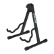 Quiklok GS438 lichtgewicht inklapbaar statief voor elektrische en akoestische gitaar. De dragers van dit statief zijn voorzien van een zacht rubber waardoor het instrument beter op zijn plaats blijft staan. Daarnaast zorgt het ervoor dat de body niet beschadigt wanneer hij in de steun wordt geplaatst. Het gedeelte van het statief waar je gitaar tegen aan staat heeft tevens een rubberen beschermlaag.