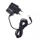 Standaard europese platte ongeaarde stekker. De connector heeft een opening met een diameter van 2.1 mm en een buitendiameter van 5.5 mm. De plug heeft een positieve spanning aan de binnenzijde, negatief aan de buitenzijde.