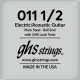GHS Strings GB 011" 1/2 losse plain steel gitaarsnaar voor elektrische- en akoestische gitaren in .0115" dikte. GHS Strings Guitar Boomers snaren zijn GHS' meest populaire snaren, geschikt voor Heavy metal, Rock, Country, Blues en Pop stijlen.
