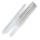Richter Springbreak I Bling Bling gitaarband in witte uitvoering met gouden klinknagels, typenummer 1822. Deze gitaarrriem is een elegante blikvanger met een lederen uitstraling en goudkleurige klinknagels.