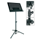 Stevige dirigentlessenaar met metalen geperforeerd blad en instelbare hoogte. Het statief is gemaakt van aluminium en heeft een lichtgewicht 3-poots onderstel. De lessenaar heeft een zwart geperforeerd blad en is traploos in hoogte af te stellen. De kanteling van het blad is gemakkelijk af te stellen met een robuuste kunststof draaiknop. Hij is uitgerust met een stabiele 3-poot voorzien van kunststof doppen voor optimale grip en bescherming van de vloer.