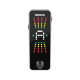 Bijna de volledige bovenzijde van de tuner is, naast de aan/uit schakelaar, gereserveerd voor het display. De te stemmen noot wordt in het midden groot aangegeven, LEDs eronder en erboven geven duidelijk aan of de snaar te hoog of te laag gestemd staat. Deze tuner stemt tot op 0.05ct nauwkeurig, je instrument is dus altijd goed gestemd. Uiteraard kan de tuner worden gecalibreerd, dan kan m.b.v. de aan/uit schakelaar.